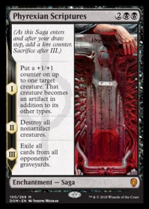 These cards are all extremely good and I extremely did not have any answers for them. A 6/6 demon is rudely just out of reach of all of my removal. And Phyrexian Scriptures is a great wipe that leaves the opponent’s best creature. And I saw one of these every game!