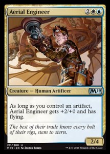 These are some very clear build-arounds. The BW deck is centered on lifegain and lifegain triggers, so the Regal Bloodlord is a great fit that nobody else at the table would be interested in. Draconic Disciple is sneaky good in RG ramp, being both a ramper and a payoff. The Aerial Engineer is great in UW artifacts-matters and could be a Splash, except the artifacts in this set sort of suck. So you’re really only going to run this in a UW deck with lots of “affinity” synergies making it worth it to run the 2/1 Scarecrow and such.