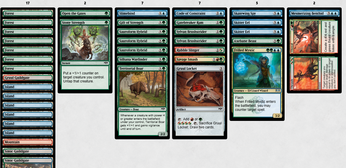 Game 1: pretty easy win against a very slooooooow player. Almost enough to make me switch to Arena. Had a bad keep in the first game but easily stabilized and ground down a bad Gruul deck.
