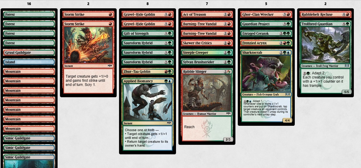 Holy cow, that was a MESS. Should I have been Rakdos? Never a clear black signal of any worth, though there were a lot of Plague Wights that wheeled around. But the playable strength smeared across Temur seemed fine after I calmed down afterwards. I removed my bizarre black-splash for Rakdos and just played a generic beater of a deck.
