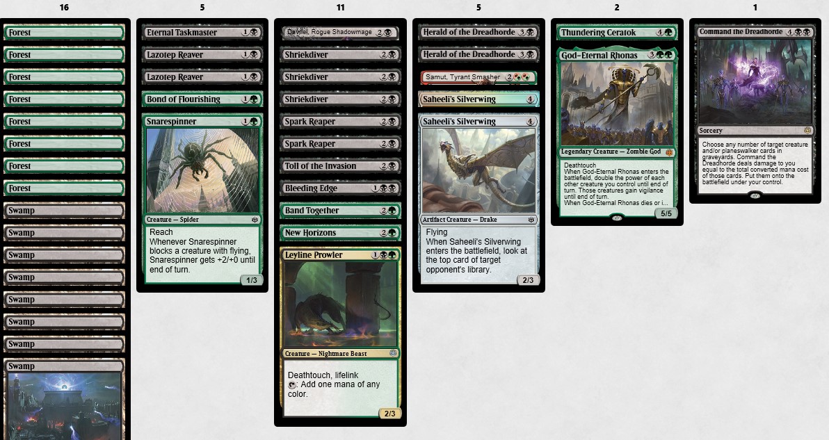 I felt like this deck was… better than it’s final performance. Being in black and not having ANY of the good removal definitely hurt. Samut wasn’t terrible with an abundance of creatures, but it really wants to be on the front foot for sure.