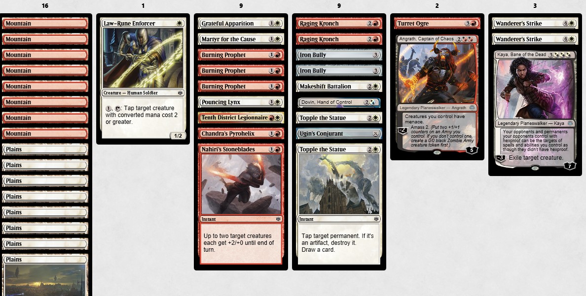 There is almost something with a “Red/white spells aggro deck” but I think it relies a lot on getting key uncommons (like 10th), the good combat tricks, and just a ridiculous number of Burning Prophets. Doesn’t strike me as a very good archetype to be in.