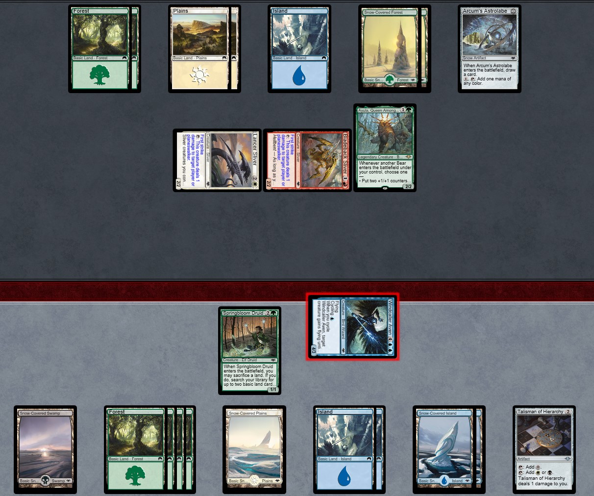 It takes me a moment, but I figure out what they are doing. They’re sitting there and going to use their Sliver trigger at a random time to see if I AFK’d or alt-tabbed. I have 6 seconds to respond. I can’t F6 through, because I still have to approve of ‘Declare Blockers”. Unwilling to be angle-shot, I sat there for three minutes, snapped off a pass on the first sliver, waiting another minute, and snapped off the second. From there, the Aven got through.