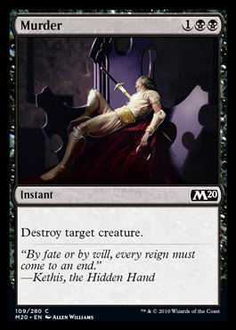 Removal, the speed/power/flexibility, generally defines a set. There are lots of different iterations (more instant-speed lends itself to defensive, card-advantage decks etc.) but it’s always the first thing to look at. Let’s take a look at what M20 brings us.