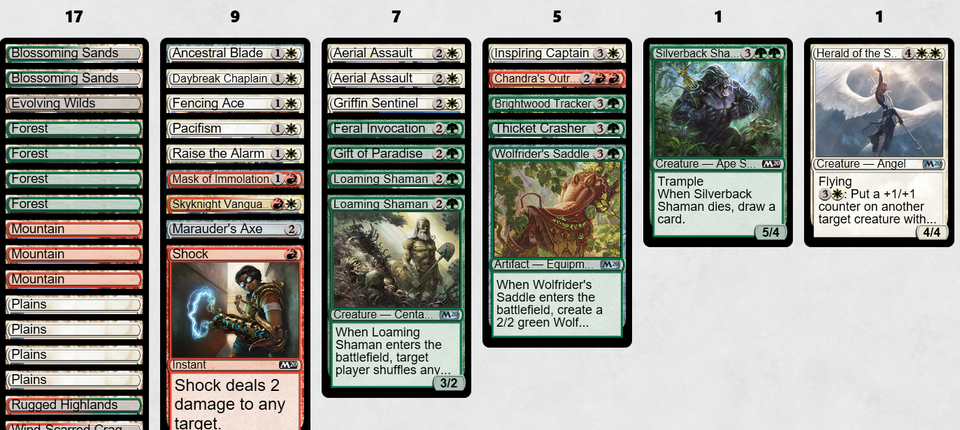 - Round 2 vs. Temur: I got greedy and kept a one lander but it had a lot of 2-drops and I was on the play. The artifact value (especially on the Fencing Ace) put them under too much pressure and I won.