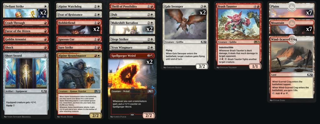 Lost the draft log because apparently I forgot to set up 17lands on my laptop. Regardless, a sort of botched draft (a lot of those lately) with a missed Liliana’s Devotee probably a signal that I should gone black. So I fought a contested RW lane coming up with something low to the ground, but no real power.