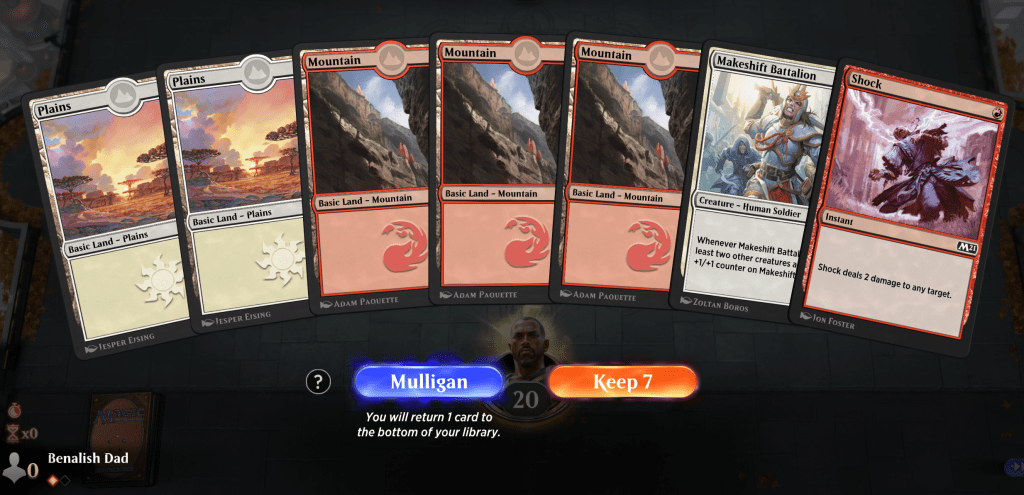 1. Yes I unquestionably feel off my game. I think it’s a combination of a few things. First, I took a few months off. Second, M21 is a pretty flat power level set, so it makes finding the lane both more difficult and more important. Finally I switched to Arena which is a VERY slick interface and helps games go twice as fast (packing in more Magic per capita) but setting up stops, end of turn moves and such definitely has a learning curve.
