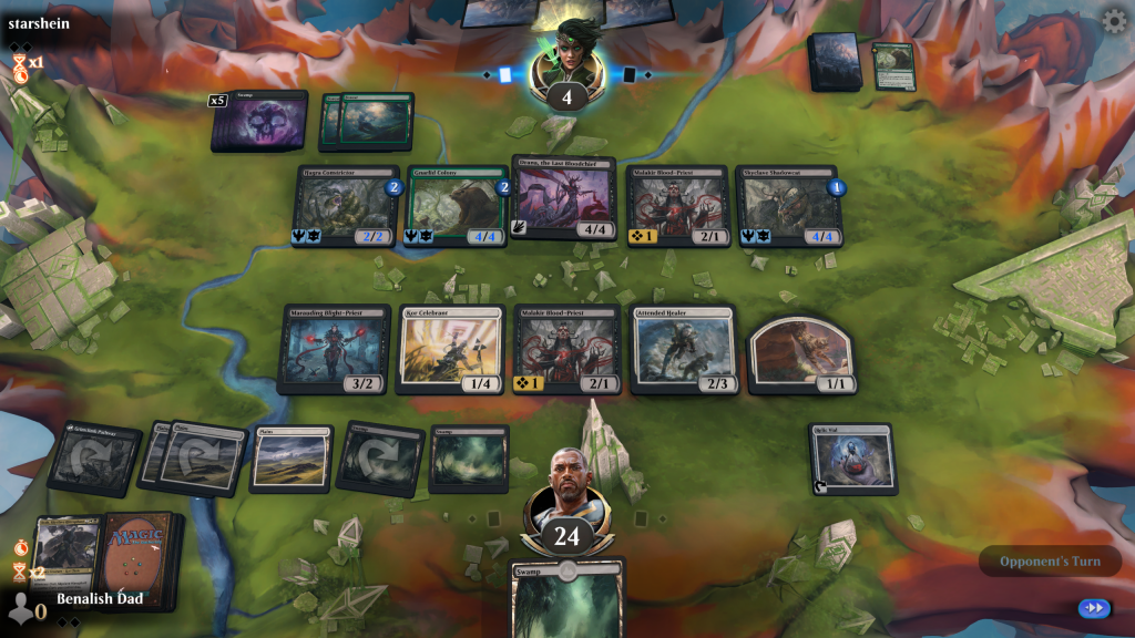 I’ve never been so far behind on board with such an inevitable victory. The combo of sacrificing a cat to gain one life, deal two damage, cat spawns, gaining ANOTHER life and dealing another damage. On each turn, mine and opponents. However, the deck felt like a very finicky combo deck. Sometimes things arrived in the right order and I ran them over. Sometimes not and I could never catch my breath.