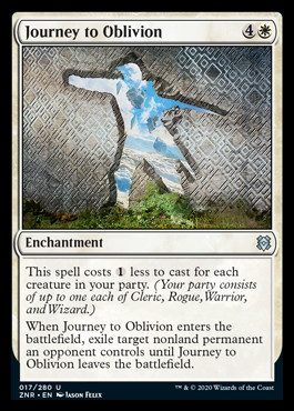 Solid removal that can get disgustingly cheap versus a very powerful flip-land (it’s not to be underestimated that it triggers enter-the-battlefield abilities again). But I stay on white
