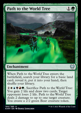 The artifact is at uncommon, so let’s just assume that’s not going to be a thing. There’s no Evolving wilds, though snow-dual-lands (the hyphens are getting out of control) will be in each pack (?). But green, green has the tools. Two at common and two at uncommon, covering both snow and regular splashing mana. There are a lot of gold uncommons (and the sagas) so 5C Green might be a source of great hilarity.