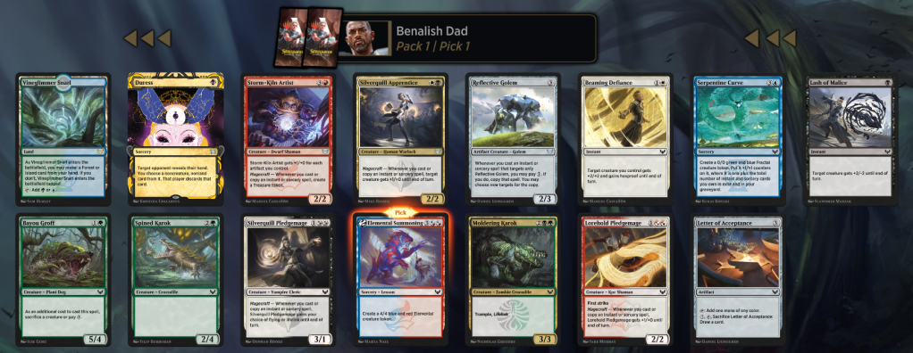 Pretty clear Prismari lane, with a random Lorehold Command thrown in, with no white to follow it up. Weird.