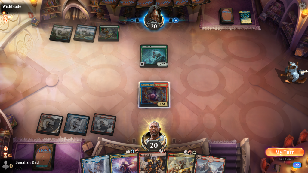 Good little aggro start, but then I mis-read Wandering Archaic. I thought it was like reflective Golem on targeting spells, but no, it’s any instant or sorcery. So I gifted my opponent a 7/7 fractal.