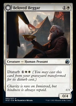 Pay the 4WW Disturb cost and you get a full-fledged Serra Angel: 4/4 Flying & Vigilance. That this is a perfect 2-drop in a control deck game plan. It’s nice that it plays both roles: early speed bump AND high-mana payoff. That makes it sort of a functional 2-for-1, though it does have to die in order to come back in Serra Angel form. Not all decks will want it; but those that do will definitely want it.