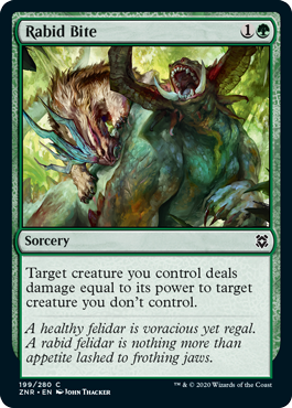 personal preference talk: I get the tension on a bite/fight card. If i cast it they can instant speed mess with my creature and i potentially get blown out. so if it is fight i may be too weak and they move to the bite version to make it stronger. but …. it just doesn’t sit right with me, or at least, not at common. i want fight at common and bite at uncommon
