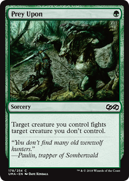 DfD is a fight spell that *sometimes* boosts your half of the brawl. This is something Wizards constantly tinkers with as they putter with green’s creature removal. Sometimes it’s a fight, sometimes it’s a bite/punch, sometimes there’s a boost, etc. etc.