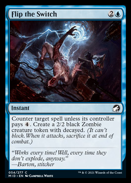 A slow, grindy deck that can’t get value out of decaying zombies is not the best home for Flip the Switch. But it’s not the WORST home either, there are decent other plays at instant speed that make holding up counterspell mana tolerable.