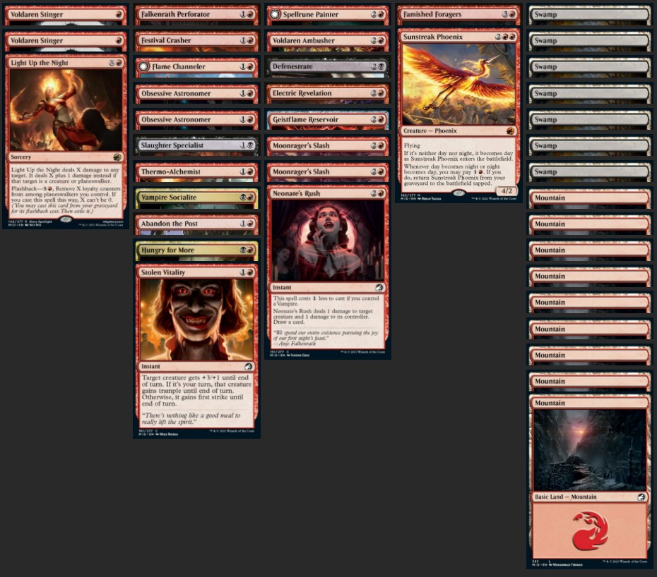 I got a shocking amount of mileage out of Lunar Frenzy. The quasi-“Oops, you’re dead” along with some surprising flexibility as a 1-2 mana trick was just great. And Midnight Hunt was not the *best* home that we’ve ever seen for the Alchemist, but it could definitely close out game with some flashback action.