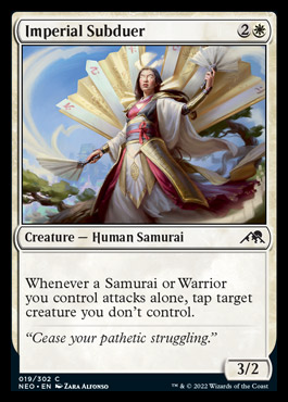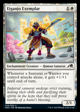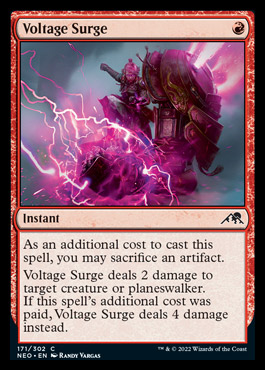 The two pieces of instant speed removal are clear frontrunners. The others are a bit of a mixed bag. A cheap creature/equipment, a solid 3-drop that also accelerates you, a cantrip the checks the artifact box and can turn into a creature, and finally a quasi-bimodal card. I think the third slot is a close match between the Synthesizer and the Samurai, and I’ll give a slight nod to the aggression inherent to red and pick the samurai. Real close.