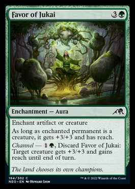 A lot of intriguing stuff from green. First, a lot of bi-modal cards with channel. A 6-drop that could also instead fix your mana? Yes please. The Saga of Master Seshiro is probably a reach, but a card that enables some good attacks that then turns into a 5/5 with unbelievably sweet art is a card that I want to make great. Master’s Rebuke looks like a great bite card at low cost and instant speed. And Geothermal Kami might be absolutely ridiculous, pulling Sagas back. Or a creature so you can instead use the channel mode. Or that enchantment removal spell in black? I see shenanigans in its future.