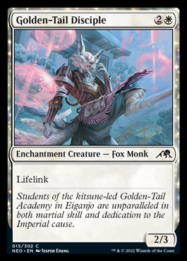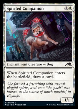 Some classics and some really interesting twists. Lethal Exploit looks like solid cheap removal. Twisted Embrace is a sweet twist on the “4-mana removal for black” as it requires you having a creature (that’s bad) but it also leaves an enchantment in play (that’s good!) as well as +1/+1. The Undercity Scrounger looks enough like Sailor of Means (and is an artifact) that I think it will always be in demand. Clawing Torment is very interesting. It’s cheap, it checks the enchantment box, it removes a blocker (if it’s a defending creature) makes it a little smaller (if it’s attacking) and drains a little. That’s quite the collection of small things that might might add up to a card. Which brings us to the Kami. 4 MV for a 3/4 is fine, but if you jump through the hoops (enchantment and artifact) it pays you off handsomely with a card. This reminds me *a lot* of Blade Juggler, and despite costing an extra mana I think should be respected.