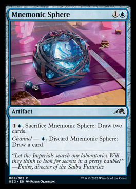 As usual, really interesting mix from blue. Because blue never has obviously great removal or great-early-creatures, it’s always more of speculating “what’s the glue card here?” Armguard Familiar strikes me an an uncharastically (for blue) Good-early-and-good-late, type of card. Mnemonic Sphere reeks of Golden Egg, being a free cantrip or artifact-drawing-two-cards. The Moonsnare Prototype is similar, in that it ramps early and is a removal spell late, though there are a lot of conditions attached. Short Circuit is borderline removal, the Specialist is Man-o-War with ninjutsu (!), and Tamiyo’s Compleation is expensive Claustrophobia. When in doubt, choose the cheaper cards with the most flexibility and that’s what we’re going to do here.