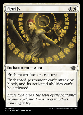 Two removal spells (one Pacifism+ the other a little clunkier but more guaranteed in a world with Crafting). The creatures are a spread: efficient 1/2 plus a counter, raw power (5/4 worth of stats for 3), expensive with plainscycling, and a utility artifact that also goes wide. I think Petrify will be solid, even with opponents able to craft away the card. Tinker’s Tote will happily go into every white deck I can imagine. And while the Glorifier does require more work (it’s not usually being cast on turn three), regularly putting five power on the battlefield for only 3-mana is hard to ignore.