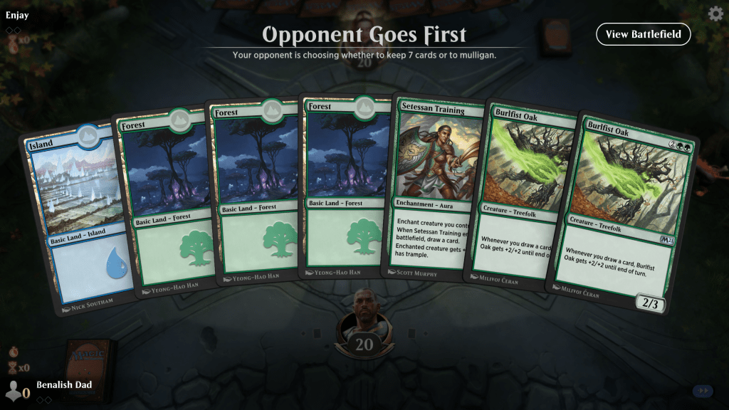 This feels like a classic “bad keep”. 5 lands is never ideal, but there’s early action and cantriping into another card. Result: 5 out of the next 6 cards were lands. I didn’t win this game you guys.