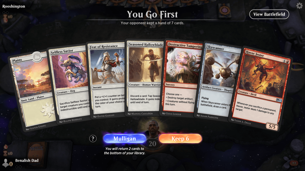 Already mulled a 1-lander. Do I go down to 5 cards? This only needed one mana of any color in two draw steps to be decent. Not a great feel-good keep, but I kept. And didn’t draw land for three draw steps and lost.