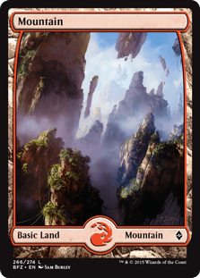 I’m happiest right now with the mountains, a great mix of the old ways (Tempest & Ice Age) with some fabulous newer pieces that don’t all look interchangeable. I really like the BFZ full-art one as well. Islands and Forests are also in a good place, with only some minor tweaks needed. Plains are a little monotonous, aside from Min Yum’s great watercolor-esque plains, they all look alike with a clear horizon line off in the distance. Swamps… ugh swamps are the worst. I’m fond of the Mirage swamp and the Amonkhet swamp is passable (it’s the only decent basic land in Amonkhet; the rest had giant horns looming everywhere) but the rest are just blah.