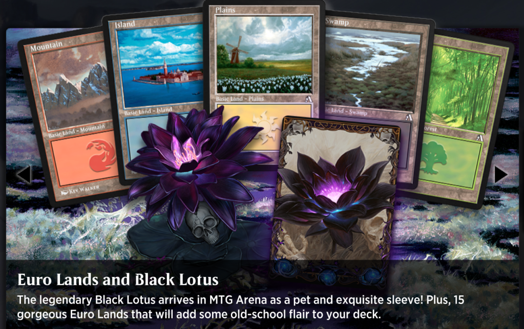 Breaking news from–uh–a few weeks ago (I’ve been distracted) Arena has swaggy Euro lands available for basic land usage! AIRHORN