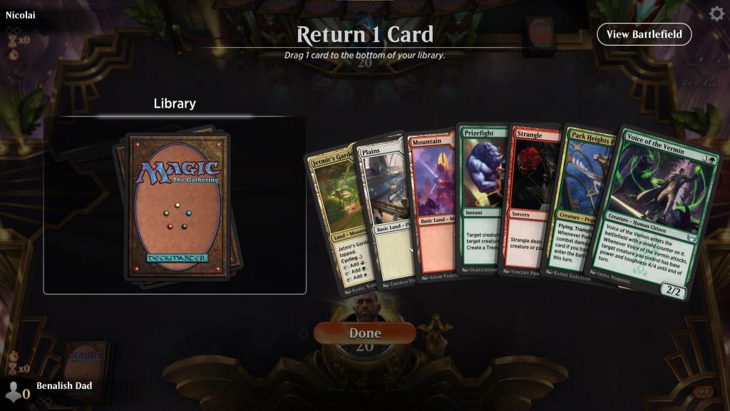 Ah the classic conundrum: keeping a one land hand when on the draw. Oppo is also playing an aggressive deck and this is game three. Each previous game whoever was on the play was the winner, just through front-foot aggression (god bless you SNC). So, what do we do here?