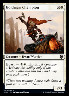 These are the five that jumped out at me. Territorial Hammerskull was an absolute beater, but I’m not sure if paying two mana for the same effect is going to get there. Axgard Braggart attacks as a 4/4 on turn 5 (when spending the two mana is less of a tax) and threatens to run away from the game if left unchecked. Iron Verdict is a pretty decent removal, but only when on defense or racing. Bound in Gold is our Pacifism for the set, bland but reliable. I’m actually highest on Gods’ Hall Guardian. 3/6 Vigilance is keyword: big for sure and there are a LOT of enhancements in this set (runes, equipment etc.) which scale very nicely on a creature that is playing both sides of the ball.